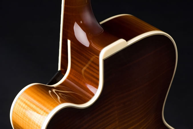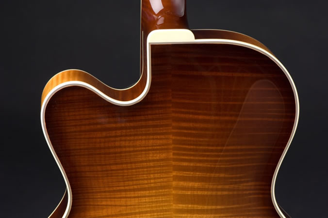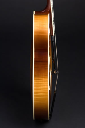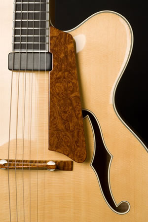 The Marquis is the distilled essence of the classic archtop guitar. Unadorned and understated, it’s elegant simplicity, sensuous edges and purity of form allow the senses to appreciate the downright sexiness of a hand carved archtop guitar. It’s visual purity is echoed by the purity of tone. Clean, rich tonality springs forth in both acoustic and electrified configurations. Click here to see features and options.
